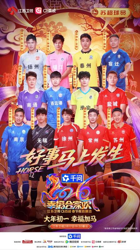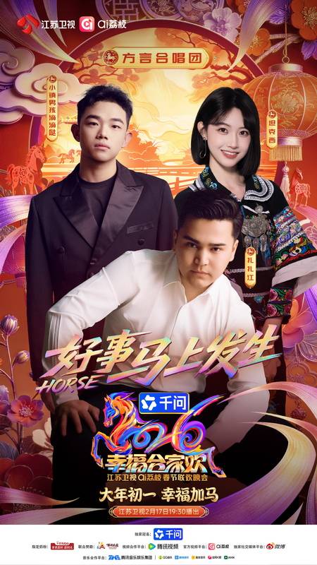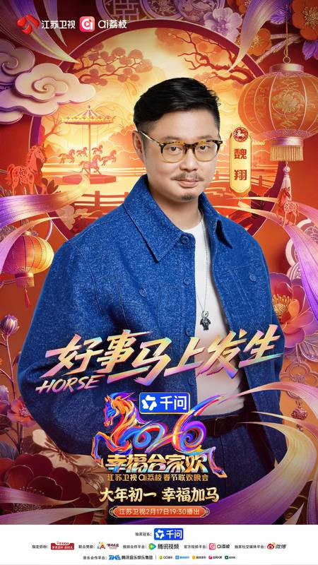 晚会已定档于2月17日(农历大年初一)晚19:30,在江苏卫视ai荔枝平台同步直播,并由国内前沿人工智能应用“千问APP” 独家冠名。此次阵容的发布,提前揭示了这台晚会跨界融合、活力创新的鲜明基调。